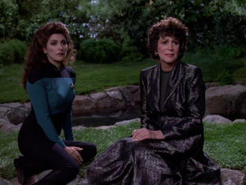 - This marks the final appearance of Deanna Troi and Lwaxana Troi together on-screen.