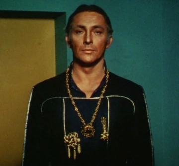 Kirk, who professed to hero-worship, and Spock endured Garth's musings on his greatness. Flattery and offers of command in Garth's fleets were answered with reminders of Garth's former life and some key benefits of the formation of the Federation. A subtle segue into Kirk's thoughts on chess revealed nothing, faithless Marta's attempt to seduce (and kill) Kirk failed. Impersonating Spock, in a third attempt to learn the chess counter-phrase, was useless. A magnificent self-coronation ceremony and bestowing the honor of "heir apparent" left Kirk unimpressed. Even sacrificing Marta to the elements of Elba II and "mercifully" using her to demonstrate a sample of his new explosive, bore no fruit.