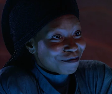 Guinan was named for Texas Guinan, a famed female saloon owner from Texas during the early 20th century. (Star Trek Encyclopedia, 4th ed., vol. 1, p. 321; "Mission Overview Year Three – Guinan Returns", TNG Season 3 DVD special features) Goldberg described Guinan as primarily "a cross between Yoda and William F. Buckley," but admitted that she put a lot of her own personality into the character as well. (Trek: The Next Generation Crew Book) She also had a backstory in mind to explain how Guinan knew Picard and how she had come to be aboard the Enterprise. "In my mind," she explained, "I always believed that Guinan was the great-great-great-great-great-great-great-great-great-great-great-great-great-great-great-great-great-great-great, couple more greats, grandmother of Picard. And the reason she's on the ship is just to see how he's doing. 'Cause, you know, she can go anywhere at any time." (50 Years of Star Trek)
