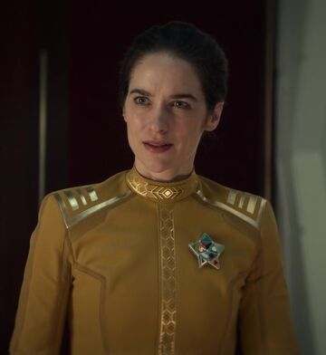 A demo video prepared for the court clerk's screen in the episode "Ad Astra per Aspera" gives Marie as the first name of this character, but it wasn't confirmed on screen until "Subspace Rhapsody". As a judge advocate she also bears the professional title of esquire. [1]