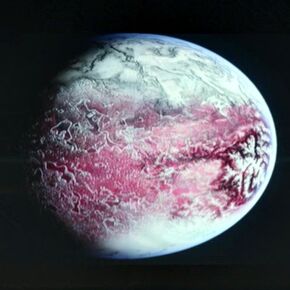Rigel VII had a rotation period of 25.1 hours and a revolution period of 329.7 solar days. Its mass was estimated at 5.71937e24×1024 kilograms and its age at 5.4 billion solar years. The planet possessed a turbulent atmosphere composed of 81% nitrogen, 18% oxygen, 0.3% argon, and 0.3% carbon dioxide, with trace amounts of methane, carbon monoxide, neon, and an unknown gas; it was filled with wind shear, exotic radiation, and heavy particles, which blocked sensors and complicated navigation. The mean surface temperature was 14.5 degrees Celsius. The planet hosted indigenous carbon-based animal and plant life, including trees and the fruit of the gods. (SNW: "Among the Lotus Eaters")