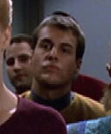 He was working on the bridge while Voyager was still in the drydock. He was present when Captain Janeway entered the bridge for the first time. Later, he was working in engineering when Vice Admiral Patterson gave Captain Janeway a tour of the ship. (VOY: "Relativity")