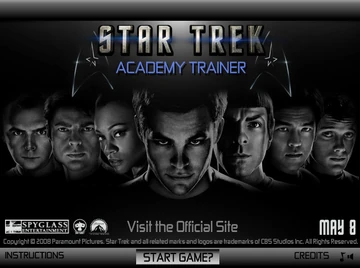 The Starfleet Academy Trainer blends elements from the movie with the Star Trek brand, and provides reoccurring tasks (visual pattern recognition), where you as a cadet will examine images from the film, searching for discrepancies.