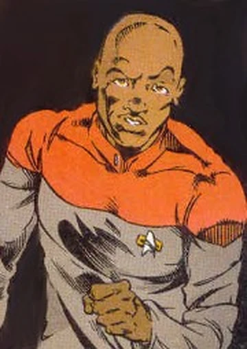 Astrun was seen in one possible future with the rank of captain, relating the tale of Omega Squad's second encounter with their Klingon rivals, First Cadre, to a Starfleet cadet named Fatima. (SA comics: "mangHom qaD", "Between Love and Hate")
