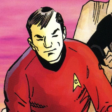 Evans was part of a landing party investigating the bombing of Loren V by the IKS Klothos in the year 2269. Masked by radiation interference, Fritz, Timmons and Evans beamed down with James T. Kirk, Spock and Leonard McCoy. They found 12 Klingon soldiers firing on the mine entrance. Fritz, Timmons and Evans flanked the Klingons from above and to the right while Kirk, Spock and McCoy flanked from the left. They fired simultaneously on the Klingons. After the battle, Evans and Leonard McCoy helped the injured Fritz get to sickbay aboard the USS Enterprise. (TOS - Year Four comic: "The Enterprise Experiment, Part 3")
