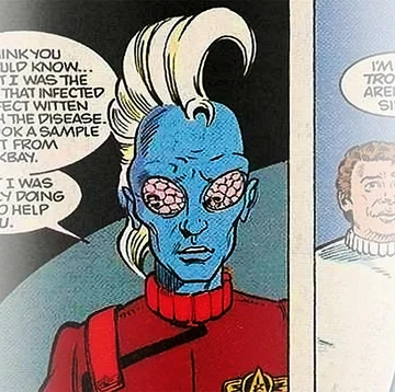 Fouton was responsible for escorting the Nasgulian refugee Argus from the transporter room to the bridge, and he held himself personally responsible when Argus was killed by the Salla, even though there was nothing he could have done about it. Fouton then worked on devising a Phaser-proof vest. Though it was able to block withstand phaser fire, the manequin disintegrated and the vest was to heavy for anyone besides Fouton to wear. When Fouton heard how New Brinden Prefect Witten planned to give Capt. Kirk up to the Klingons and the Nasgul, Fouton decided to take matters into his own hands. Fouton then hypnotized Lt. Sara Tuchinsky into beaming to Witten's bedchamber. There, Fouton injected with disease infecting his colony to ensure that he would not turn Kirk over to anyone. (TOS comics: "The Return!", "The Sentence", "Fast Friends", "Cure All")
