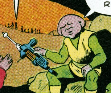 In February 2274, the crews of the USS Enterprise and USS Venture were captured with male officers forced to mine tritanium in a mine. Glynko, Lubo and Ubo were stationed as guards within a crevice in the mine. When one of the prisoners called out several times loudly for a guard, Glynko ordered Lubo to investigate, handing him a phaser rifle and warning him to be careful. Glynko watched as Lieutenant Tulb of the Venture attacked Lubo and tried to steal his rifle. Glynko took aim at Tulb with his phaser, but accidentally missed Tulb and killed Lubo. Tulb fired back with the phaser rifle and disintegrated Glynko. (TOS comic: "Husian Gambit")