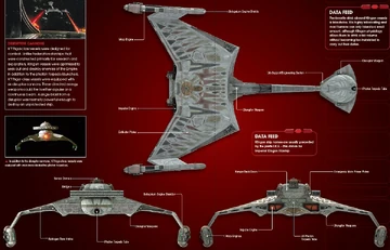 Their armaments included 6 "WP-KD-8" disruptor cannons and 2 "KP3" Photon torpedo launchers. Defenses consisted of deflector shields and a cloaking device. (DS9 reference: Star Trek: Deep Space Nine Technical Manual, FASA RPG module: Klingon Ship Recognition Manual, TOS - Unlimited comic: "Trekkers")
