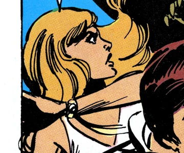 Lydia was enjoying an intimate moment with her boyfriend, Cyron Williams, in his quarters when the two engineering ensigns were attacked by a werewolf, which vanished when Williams threw a bottle of Saurian brandy at it. (TOS comic: "The Haunting of Thallus!")