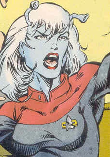 Pava and Matt Decker then journeyed into the Gamma Quadrant aboard the USS Enterprise, where Pava first met her future Captain, then-Commander William T. Riker, in an attempt to head off a suspected attack from the Dominion. Unfortunately, the attack was a ruse designed to keep Starfleet away from a conference of telepathic species on the planet Alaya II. (TNG comic: "Heart of Darkness")