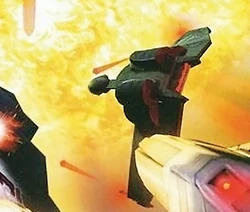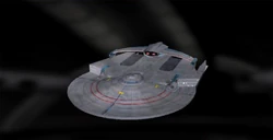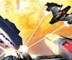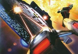 The Terran fleet is blocking the Excelsior's approach of Janus Ultima. Terran warships attack the Excelsior and the Enterprise over the raging vortex below, along with sizable waves of fighters. The fighters of the 'rebel' starships manage to defend both ships long enough for Excelsior to enter the vortex.