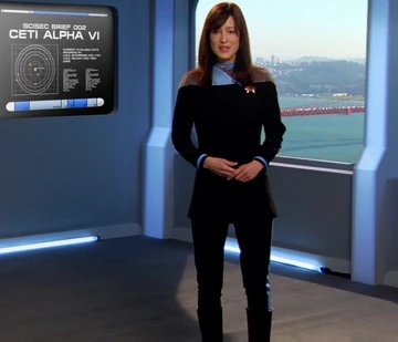 She gave a series of briefings for Starfleet Academy from the James T. Kirk Lecture Hall. Many of these briefings dealt with the discoveries of 23rd century Starfleet officers, such as the crews of the USS Enterprise and USS Enterprise-A; and the 24th century crews of the USS Enterprise-D and USS Enterprise-E. (ST episode: "Starfleet Academy SCISEC Briefs")