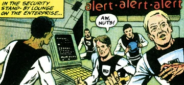 In 2274, Captain James T. Kirk requested a security detail beam down to Sarsithia when Isoth Fortress was breached by a force of scavengers. Sergeant Umeki and guards Takashida, Gomez, and Smith were on duty in the security stand-by lounge, and they transported down with Security Chief Pavel Chekov to defend the citadel. When the intruders spotted General Onoth in the fortress, however, they panicked, and he shot them before they could surrender.
