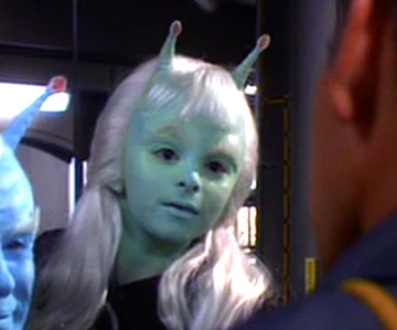 Born in October of the year 2156, Talla exhibited dominant Aenar traits, such as telepathy, but had the ability to see, which Aenar normally could not do. She had begun the habit of speaking fluently in Old Common Andorian as of the Andorian winter of 2157. She had green skin, presumably due to her mixed Andorian/Aenar parentage. She was named after her father's deceased comrade and lover Lieutenant Talas. (ENT novels: The Good That Men Do, Beneath the Raptor's Wing, To Brave the Storm)
