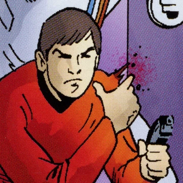 Tuthill was one of three security guards who fought a boarding party led by Romulan subcommander Che'srik Tal aboard the crippled USS Enterprise in 2269. With gravity shut off near the shuttle bay, James T. Kirk, Pavel Chekov and the security guards evaded phaser fire while floating down corridors. Tuthill was hit in the shoulder by a Romulan disruptor blast, but made it to the bridge with Kirk and Chekov. (TOS - Year Four comic: "The Enterprise Experiment, Part 2")
