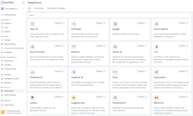 Navigate to the Integrations section on Portkey’s Sidebar. This is where you’ll connect your LLM providers.