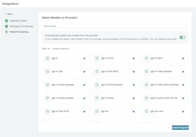 As your AI usage scales, controlling which teams can access specific models becomes crucial. You can simply manage AI models in your org by provisioning model at the top integration level.