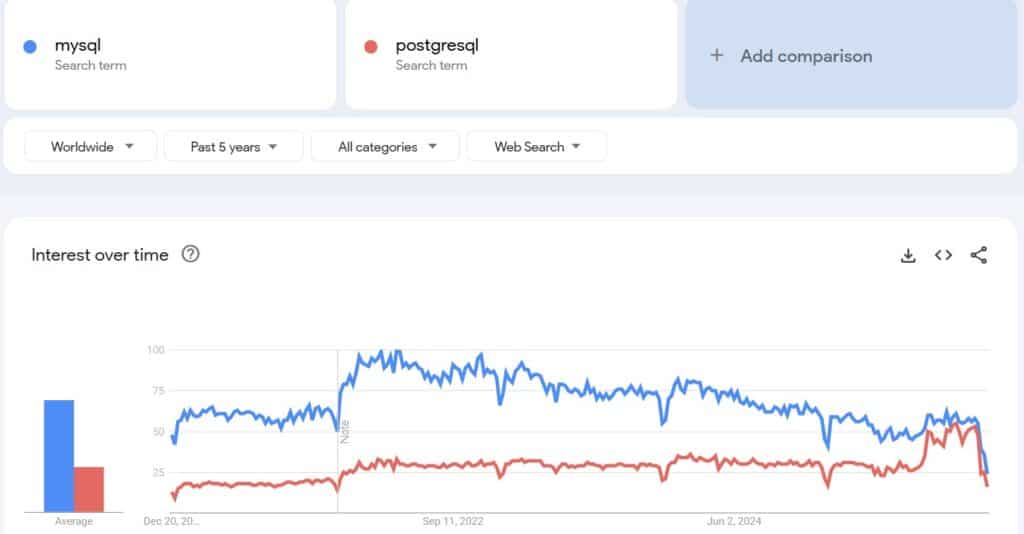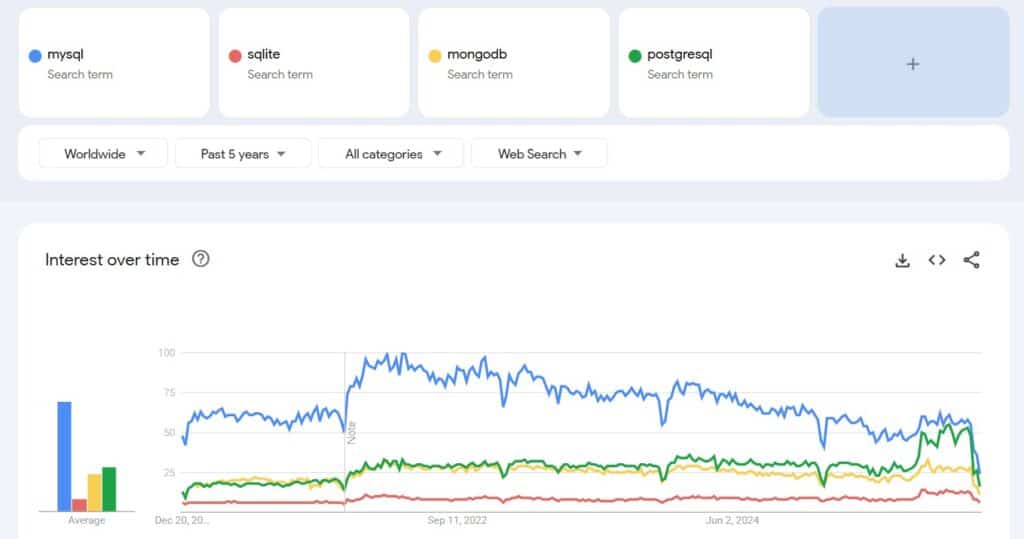 When you look at Google Trends, MySQL is still the most popular solution, so it will be easy to find documentation, forums, and help when using this database system in your projects.