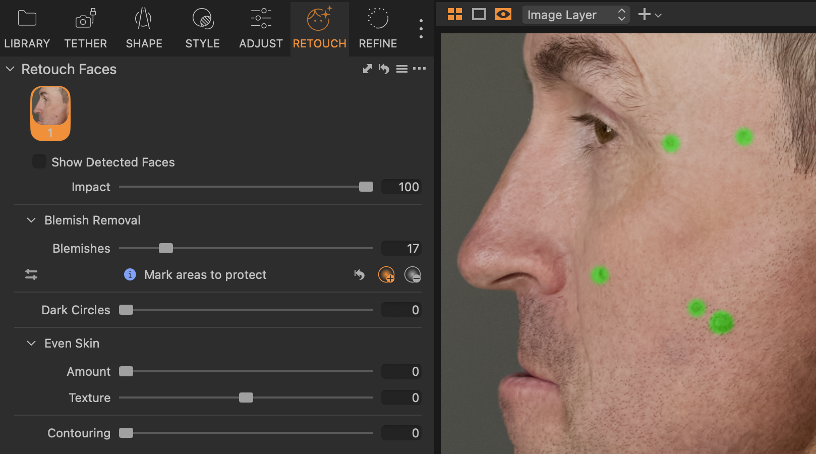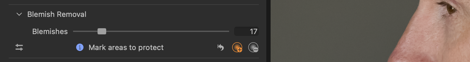 The new Blemish Protection feature lets you mark areas of the face that won’t be affected by the Blemish Removal slider.
