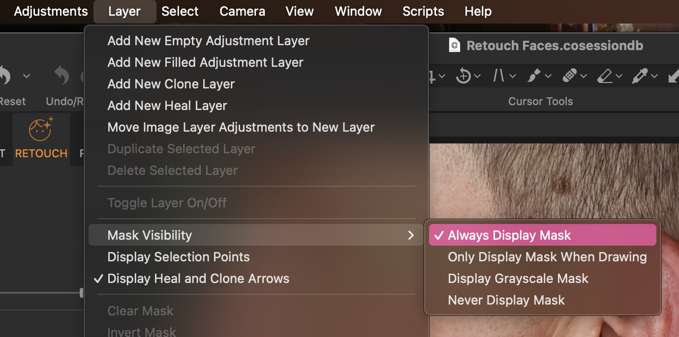 You can access the Blemish Protection Brush and Blemish Protection Eraser from the Toolbar or the Retouch Faces Tool. In the Retouch Faces Tool, you can also adjust brush settings and reset protection area for the image.