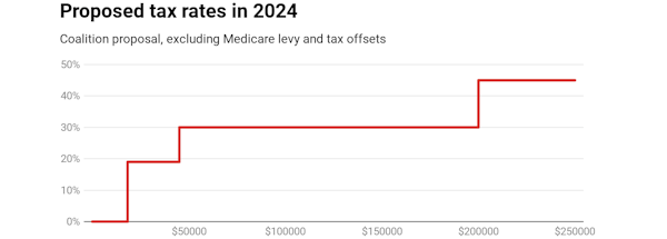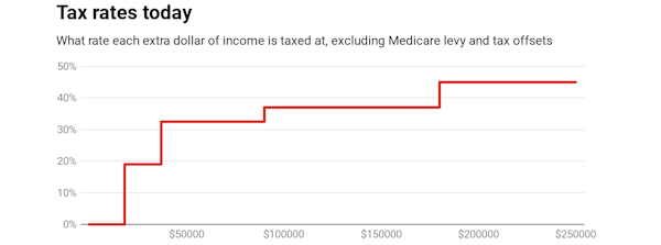 An entire rate would vanish, and on that part of their income between A$45,000 and $200,000, most people would face a flat rate of 30%, down from the 32.5% proposed in last year’s budget: