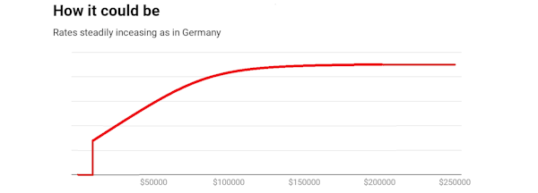 If we accept that some income redistribution is desirable, then in an ideal world we would have a smoothly increasing marginal tax rate from middle to high incomes. There would be an infinite number of tax brackets, as in Germany, where income tax rates rise continuously with income.