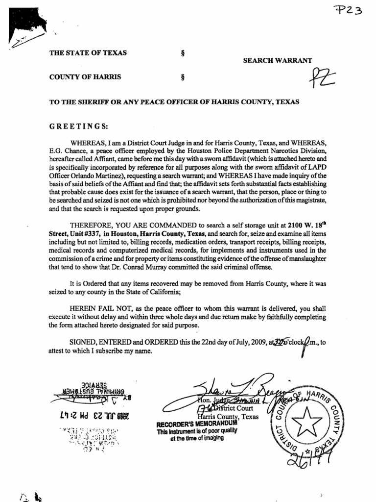 Search warrant detailing what Dr. Conrad Murray told investigators probing the death of Michael Jackson.