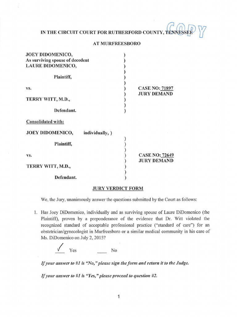 DiDomenico v. Terry Witt, M.D. - Jury Verdict Form