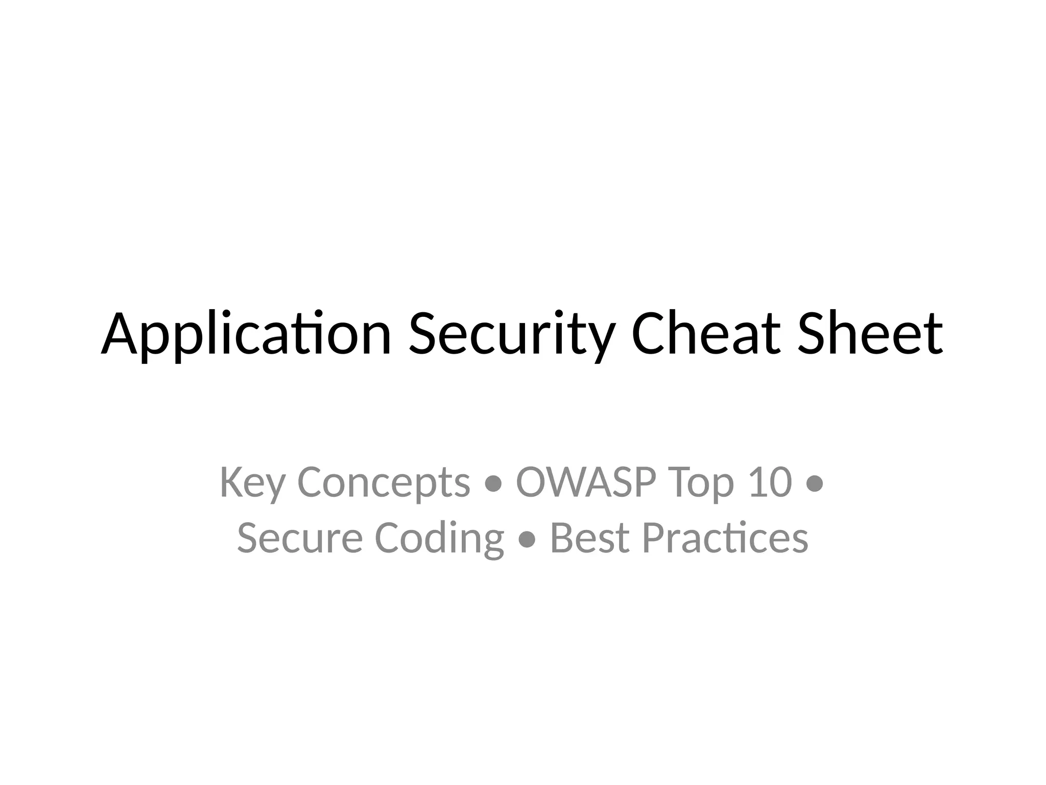 Sheet Key Concepts • OWASP Top 10 • Secure Coding • Best Practices
