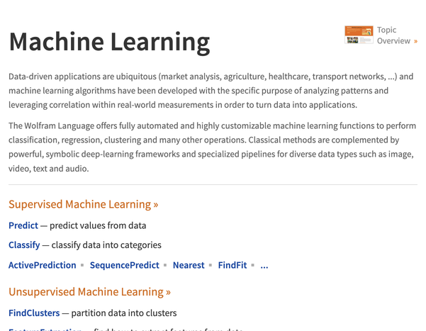 Wolfram Machine Learning is an integrated part of Wolfram Language. The full system contains over 6,000 built-in functions covering all areas of computation—all carefully integrated so they work perfectly together.